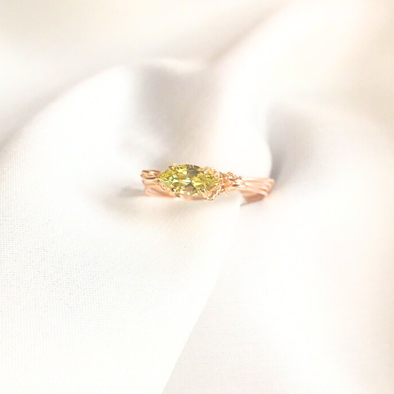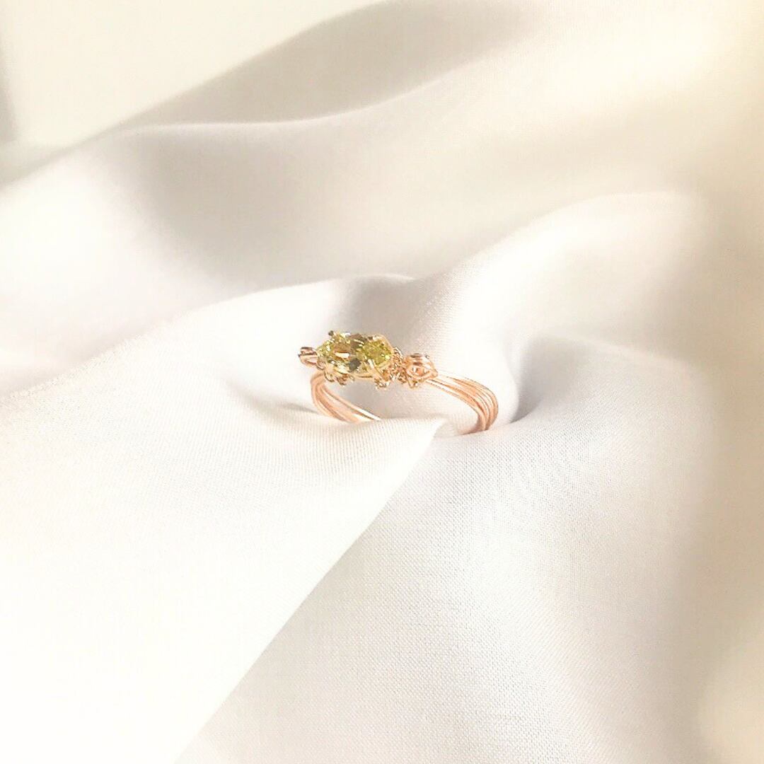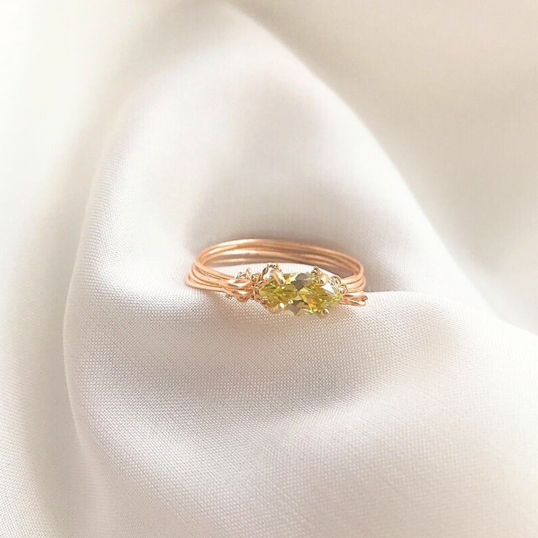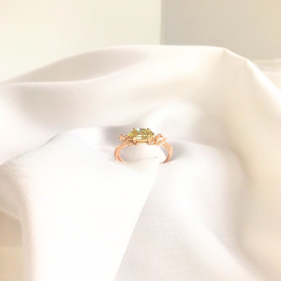 小さな光を手元に宿す、ペリドットのワイヤーリング。