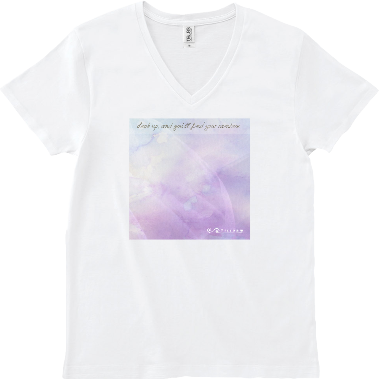 Picream★ピクリーム T-shirt Vネック ホワイト(高周波柄)