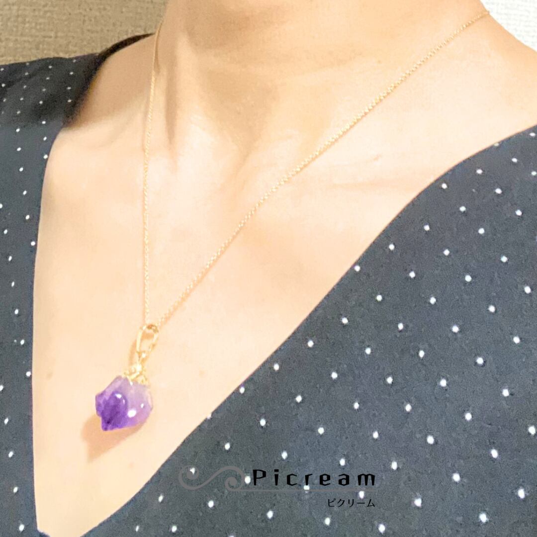 直観力を高めるアメジスト ラフロックタンブル ネックレス|天然石|パワーストーン|2月誕生石
